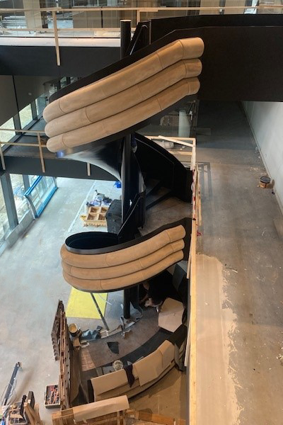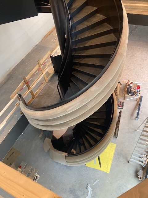 Bij Groenland Kip in Bodegraven is een belangrijke stap gezet in de afwerking van de hoofdentree: de hoofdtrap is grotendeels gereed. Komende week wordt de hardglazen balustrade geplaatst, waarmee de entree zijn definitieve vorm begint aan te nemen.