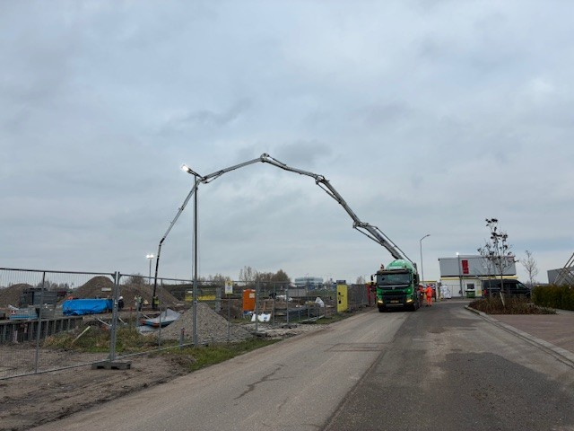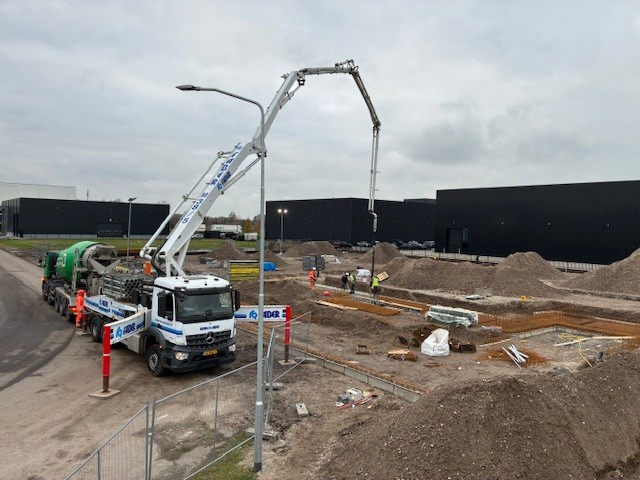 Bij het nieuwe bedrijfspand dat wij voor Nico van den Brom in Nijkerk realiseren, is een belangrijke mijlpaal bereikt: het eerste beton is inmiddels gestort. Hiermee is de start van de funderingswerkzaamheden officieel gemaakt.