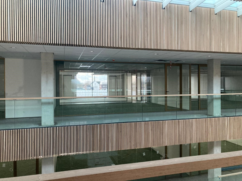 Het interieurwerk in het atrium bij Kubota in Nieuw-Vennep begint te lopen. Wij vinden dat het er al prachtig uit begint te zien.