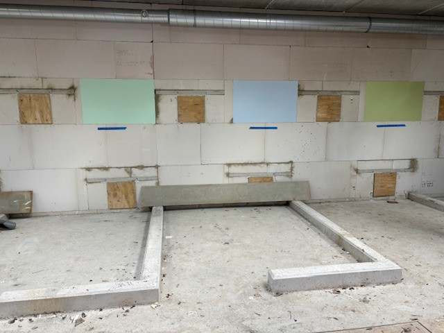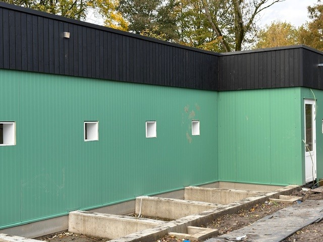 Bij het project voor Stichting AAP in Almere maken we mooie vorderingen! De gevelbekleding wordt momenteel aangebracht, waardoor het gebouw steeds meer uitstraling krijgt. Binnen wordt alvast geëxperimenteerd met de kleuren van de verblijven — er zijn proefstukjes opgezet om de juiste tinten te kiezen die straks zorgen voor een prettige en rustgevende omgeving voor de dieren.