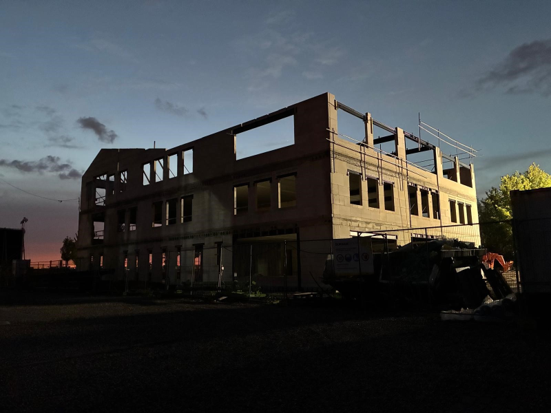 In alle vroegte zijn de eerste contouren van ons bouwproject vastgelegd. Het gebouw krijg steeds meer vorm.